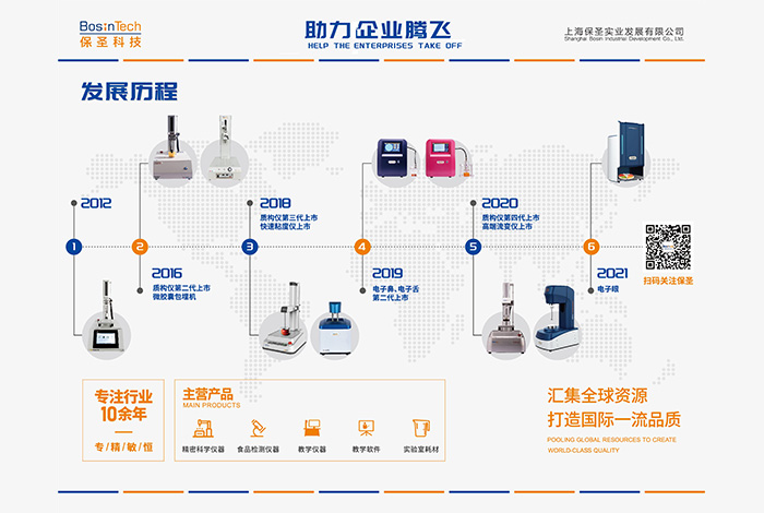 主要產(chǎn)品有:流變儀、質(zhì)構儀(物性測試儀)、電子鼻、電子舌、電子眼,快速粘度儀,GC-O, 嗅聞儀,整體感官實驗室,感官分析軟件等。保圣產(chǎn)品堅持高品質(zhì),因此贏得了良好的口碑、加上優(yōu)質(zhì)的服務使得公司產(chǎn)品暢銷國內(nèi)各大高校、研究所、食品、藥品企業(yè)。 并獲得了高度肯定。
